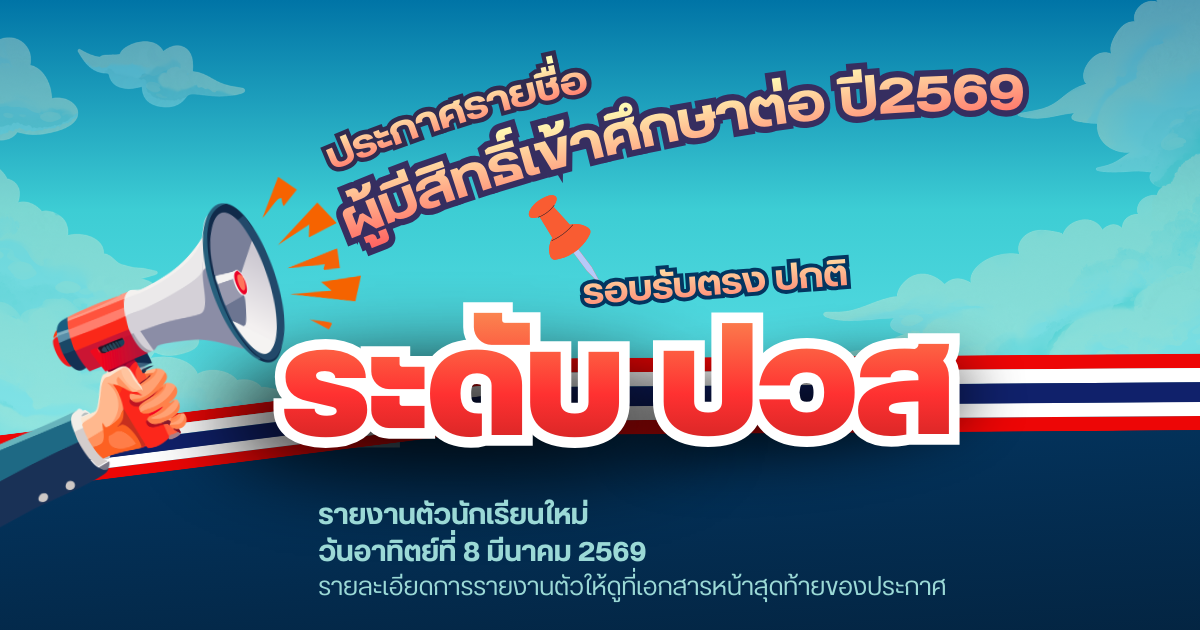 ประกาศสำหรับนักเรียน นักศึกษารอบโควตา สามารถติดต่อรับอุปกรณ์การเรียนได้ที่สหกรณ์วิทยาลัยฯ (ติดกับประตู 2) 2026-03-04