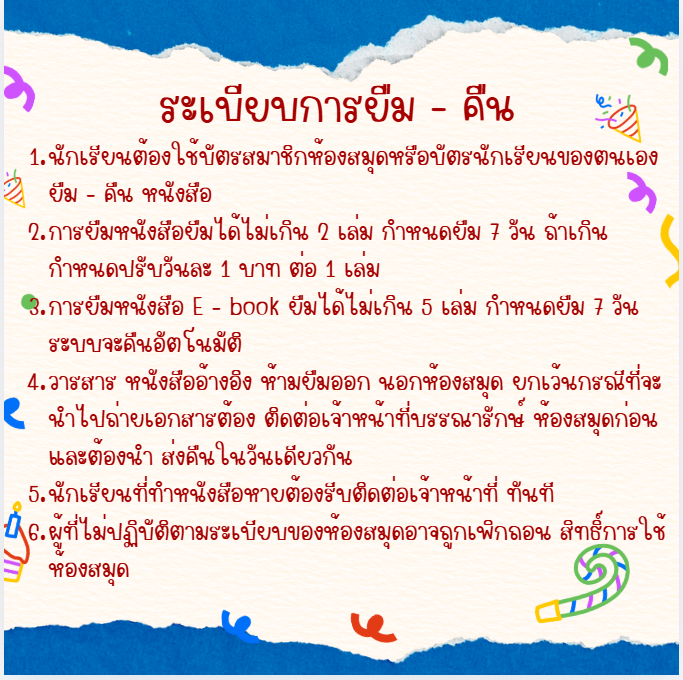 | บริการให้ยืม – คืน หนังสือ ห้องสมุดออนไลน์ หนังสืออิเล็กทรอนิกส์ |
